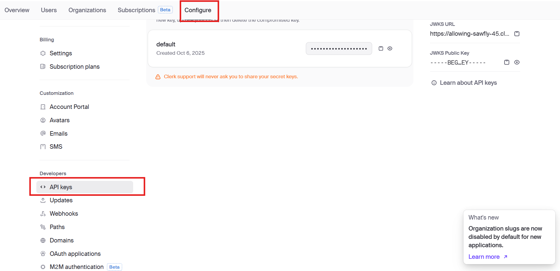 Before receiving events, you’ll need your Clerk API keys.